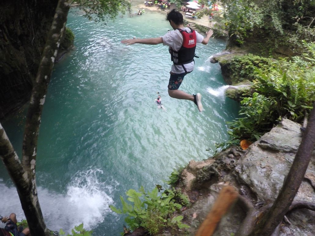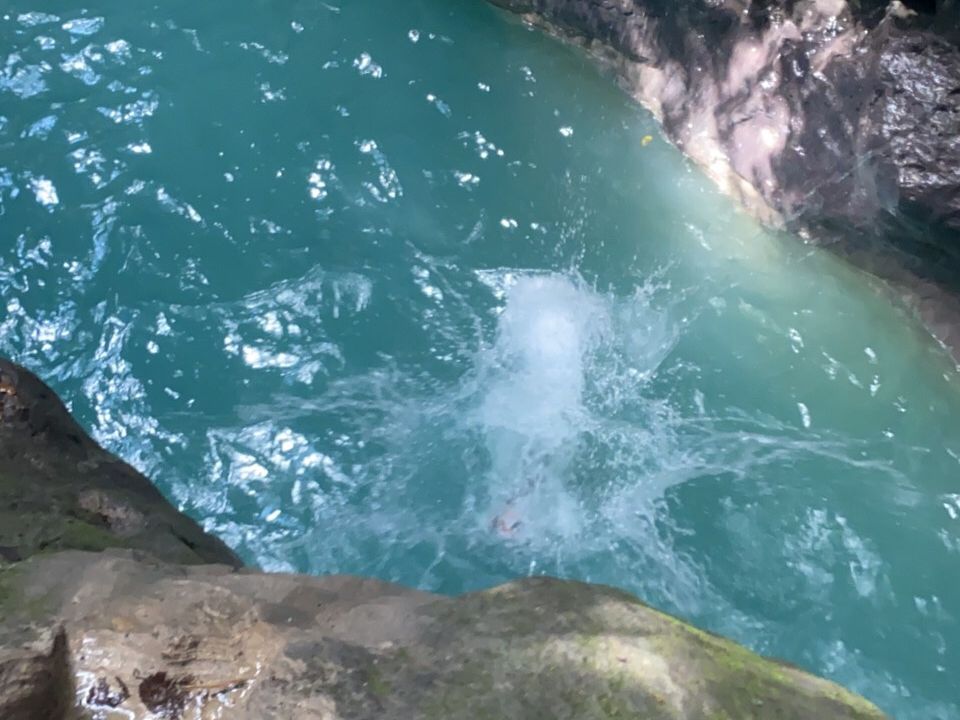 最初の飛び込みスポット(4mくらい?)は非常に不安ですが段々と高さが上がっていくので、現地の高揚感もあり最後には12mの滝壺に飛び込めるようになっているかと思います。