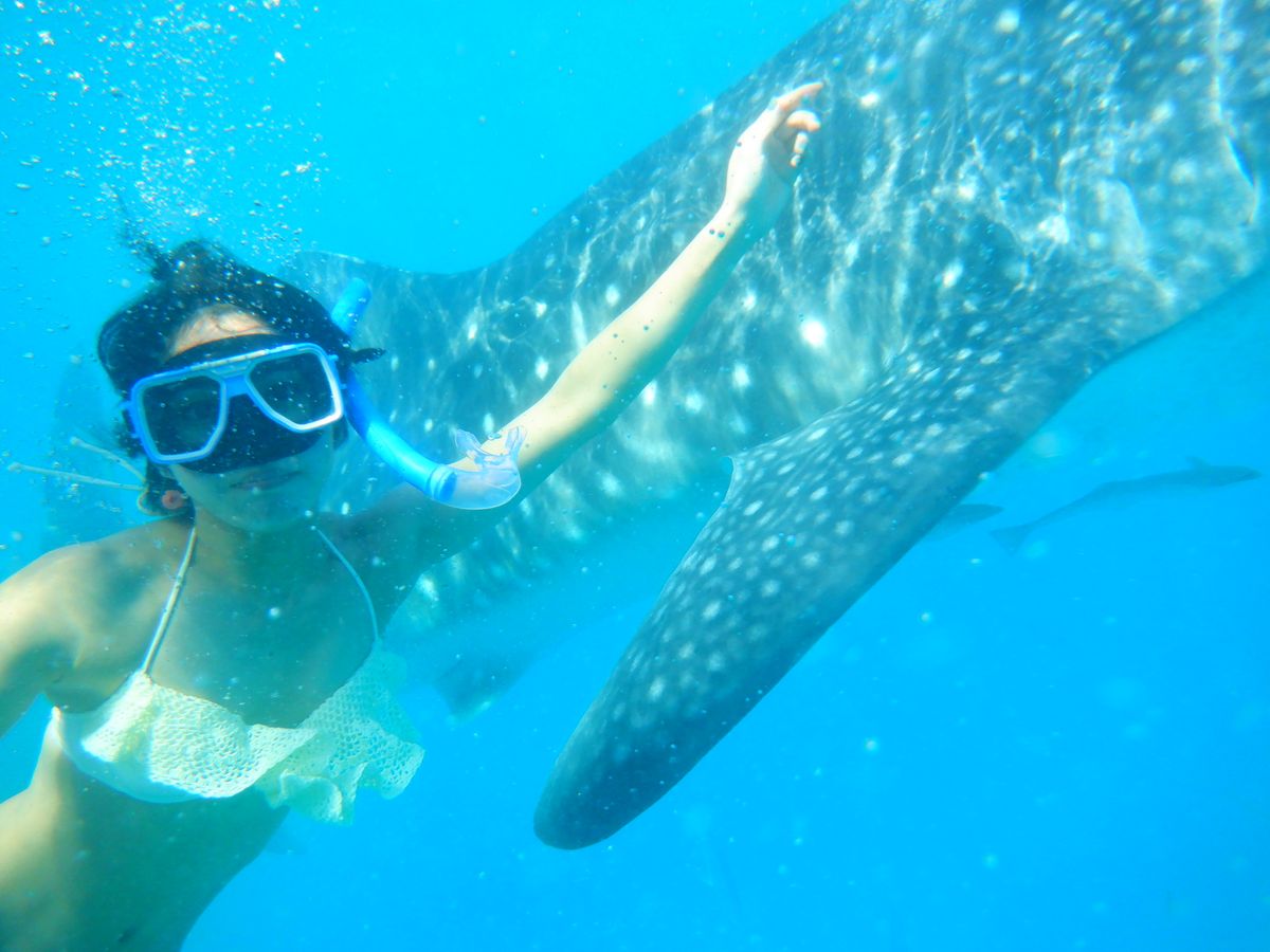 待ちわびたシュノーケリングでは、面前を雄大に泳ぐジンベイザメの姿に感動しっぱなしでした。