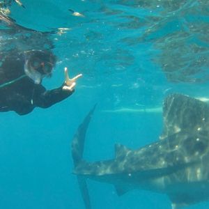 いざ、海に入るとなった時、私はシュノーケルが上手く使えず、パニックになってしまいましたが、ガイドの方が優しく指導してくださっため、途中から安心して潜る事ができました。ジンベエザメはあらゆるところにいるという訳ではなく、見つけた瞬間カメラを向けなければいけなかったため、想像以上に撮影が難しかったのですが、ジンベエザメの迫力を自分の目で実際に見ることができ、とても良い経験となりました。ガイドの方々も優しく、初めてのフィリピン旅行で不安もありましたが楽しい一日となりました!