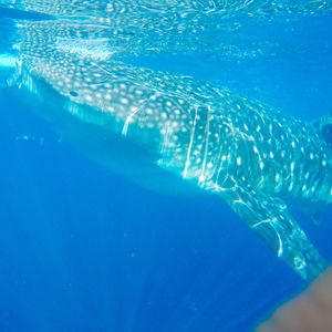 マクタン島からオスロブまで3時間以上、さらにオスロブでもバンカーボートの順番待ちがありましたが、ボートに乗ってしばらくすると水面下にヒレのある巨大な影が!水に入るとすぐ目の前に大きな口を開けてこちらに泳いでくるジンベイザメがいました。すごい迫力だったのでずっと見ていたくて、逃げずにいたらボートのお兄さんに引き戻されました(笑)本物のジンベイザメが自分のすぐ前を泳いでいるのを目の当たりにすると、本当にただただ圧倒されてしまいます。シュノーケリングでこんな大きな野生の海洋生物を間近に見られる機会はなかなか無いのではないでしょうか。