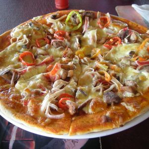 ランチはピザとスパゲッティでした。景色もよくボリュームはあるものの