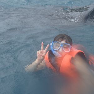 なかなかジンベイザメと泳げるツアーを聞いたことがないので参加しました。朝は5時半ピックアップととても早かったので車の中で寝て行きました。途中でコンビニにも寄ってもらえるので朝ごはんも食べられます!ビーチまではかなり遠いですが、寝ていたのでそこそこ近くに感じました。水中カメラを持っていなかったですがあちらで撮ってもらえると言われたのでいくらか払い、ずっと写真を撮ってもらいました。同乗する現地の人が写真を必死で撮ってくれるのでオススメです。CD‐ROMで帰る時貰えますよ。ジンベイザメはとても近く、何匹も来てくれます!こんな近くに来るのと言うくらい!こんな体験滅多に出来ないのでオススメです。