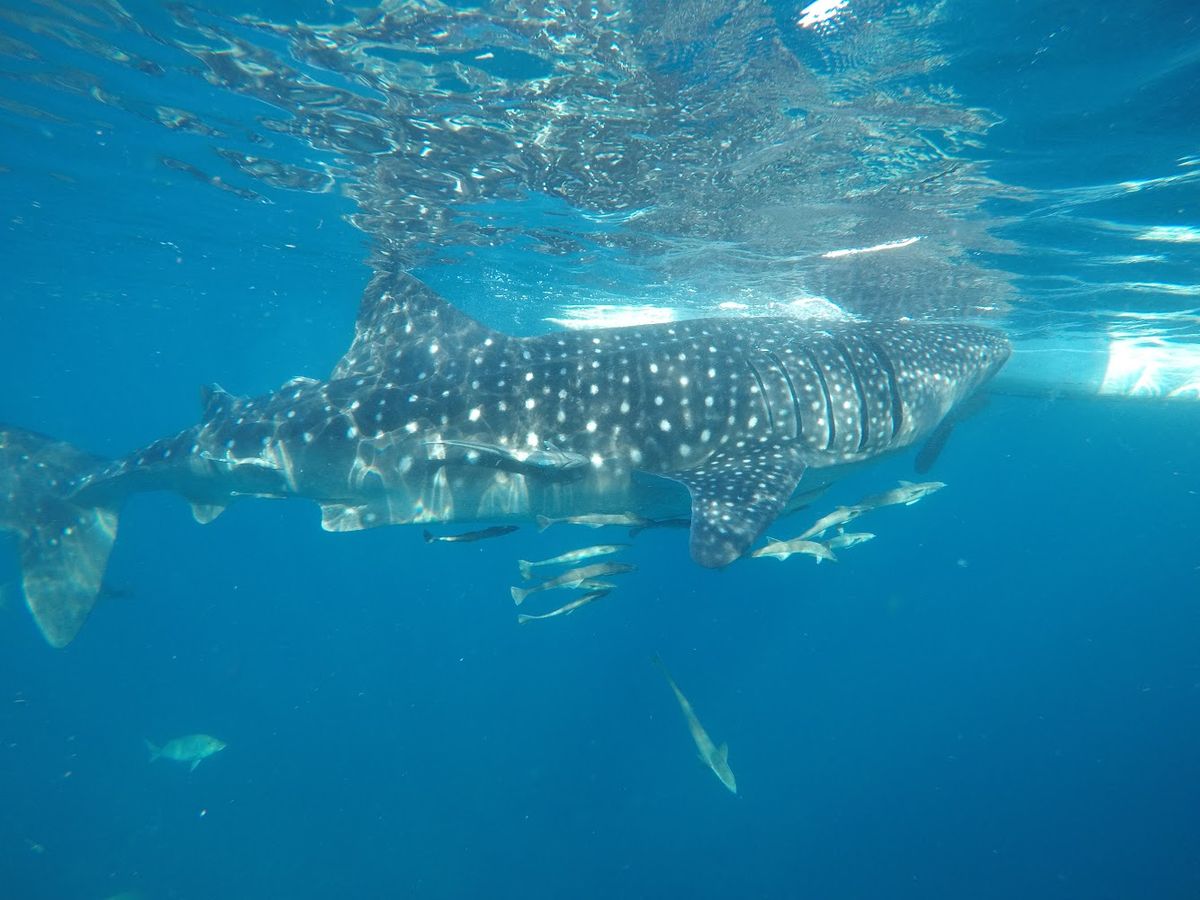 この日はおよそ30分の間に5回ほど一緒に泳ぐことができました。初めて見るジンベイザメは想像以上に大きく、そんな巨漢をゆったりと水中でしならせて泳ぐ姿は案外チャーミングです。そんなジンベイザメにかなり近くまで近づくことができ、感動! なお、私たちが行った時期(12月)はジンベイザメがあまり現れないシーズンらしく、実際に泳いでいたジンベイザメは1匹のみでした。しかし、夏であればもっと多くのジンベイザメが現れるとのことなので、一緒に泳げる機会も多くなるのかもしれませんね。