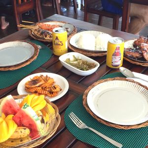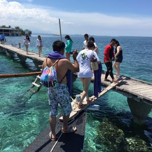 シュノーケルのあとは ナルスアン島のレストランでのフィリピンスタイルBBQ!シーフードにお肉。海藻のサラダ フルーツで お腹はいっぱい とっても美味しくてゆっくりいただきました。レストランには トイレもあり 女性の方も心配ないです!食後は ナルスアン島内をお散歩~ 階段があって 海に入れるようになっていたので私たちは もう一度海へ。 木陰にはハンモックやイスもあり時間までそれぞれ のんびり島を満喫できます。