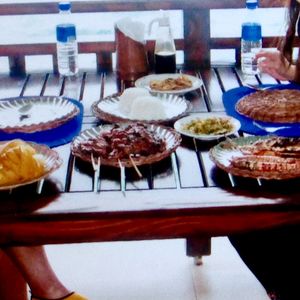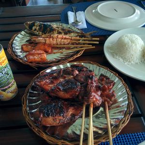 3.昼食微妙 BBQその場で焼いてたべるのかとでも思ってたら、すでに串刺しで焼かれたのがワンプレートで出された
