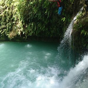 キャニオニングで行く川はまるでジャングルのような非現実的な景色や、エメラルドグリーン色の川の水がとても美しいです。
