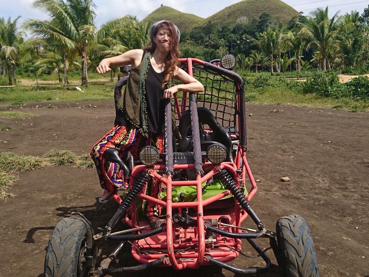 ターシャも起きていて間近で見れて良かったです。チョコレートヒルズではバギー(1人乗りのやつ)に乗り、オフロードをアクセル全開で駆け抜けて、でこぼこ道を楽しみました。スタッフの方が動画や写真を撮ってくれて最高の思い出になりました。