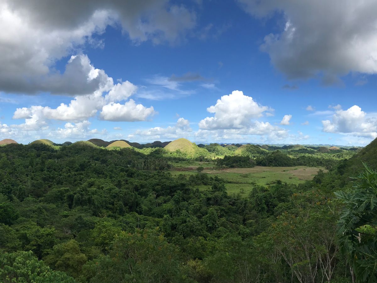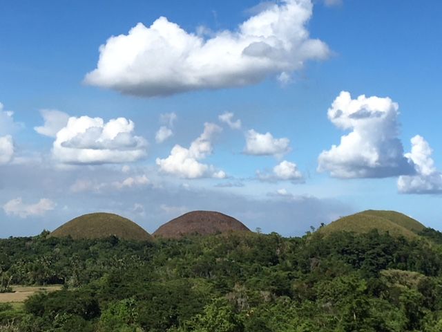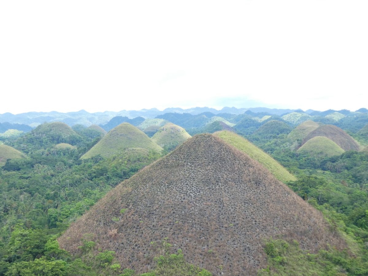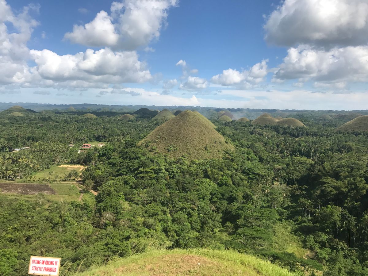 最後にチョコレートヒルズの展望台に登って景色を楽しみました。晴れていてチョコレートの山が沢山見れて良かったです。帰りのフェリーの出発時間20分前の到着でチョットドキドキしましたが、内容充実の最高のツアーでした。