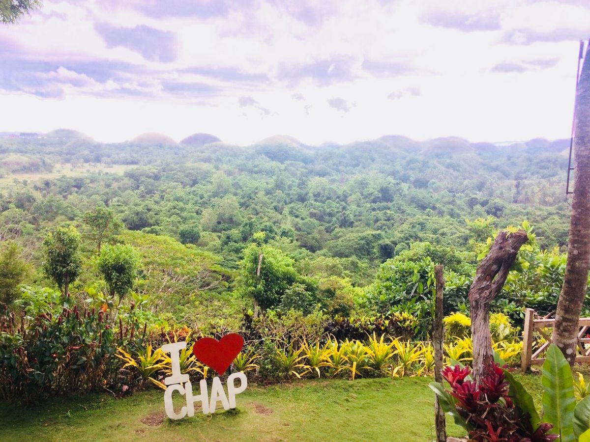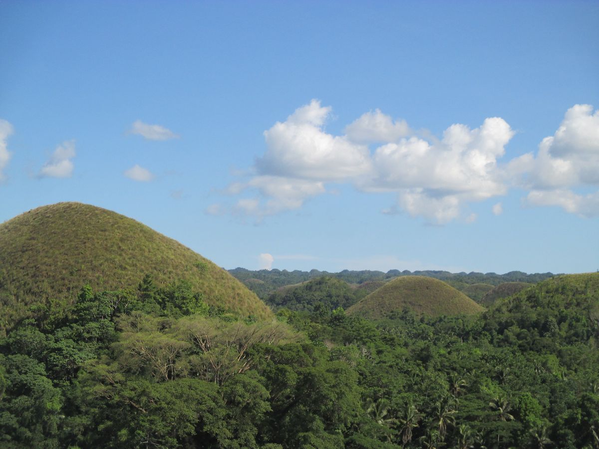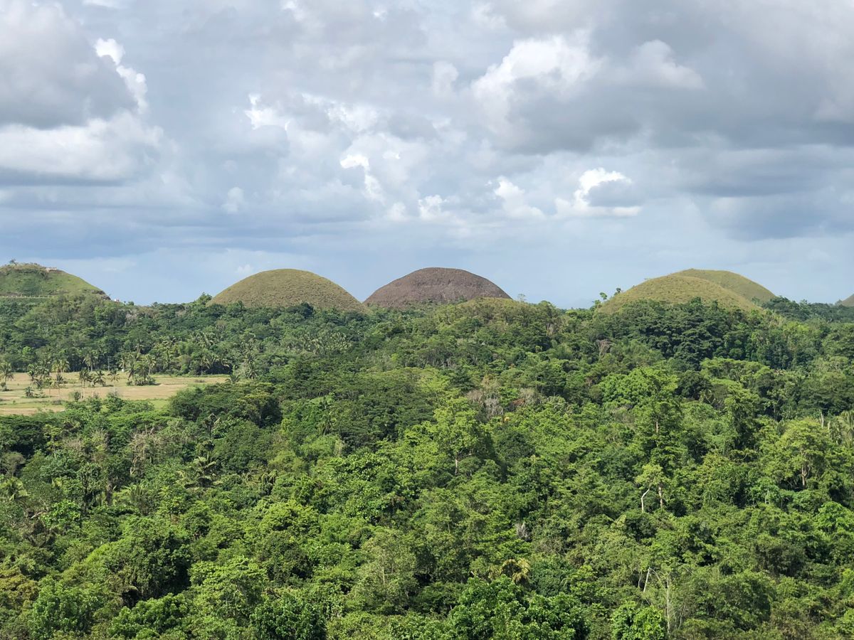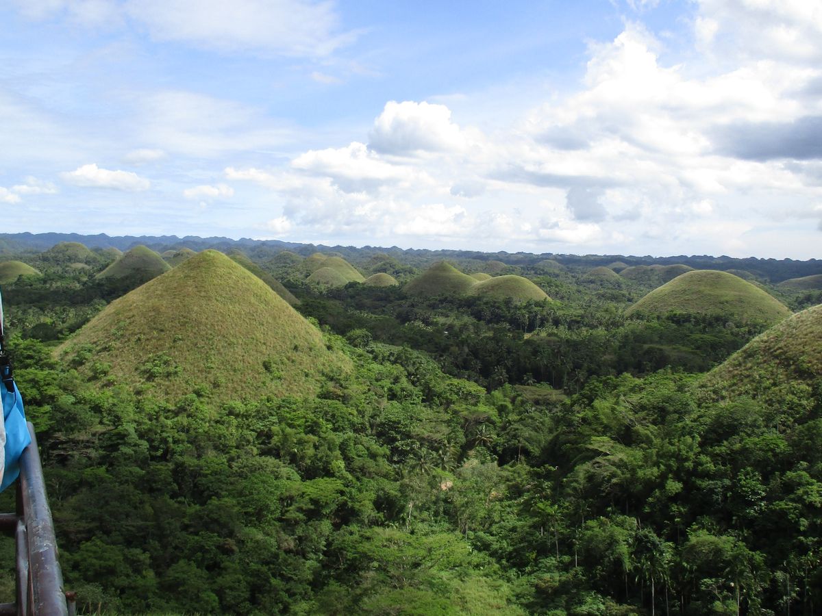 最後にチョコレートヒルズの展望台に登って景色を楽しみました。晴れていてチョコレートの山が沢山見れて良かったです。帰りのフェリーの出発時間20分前の到着でチョットドキドキしましたが、内容充実の最高のツアーでした。