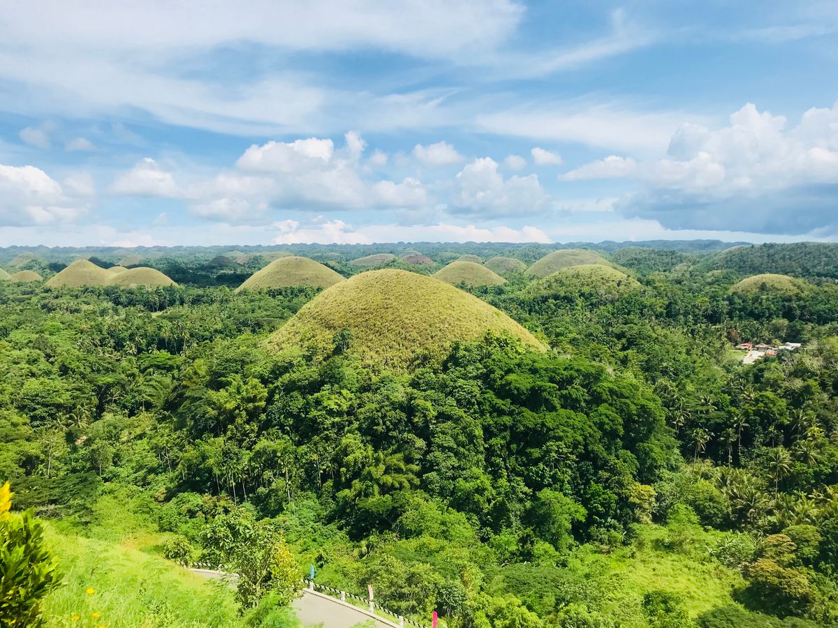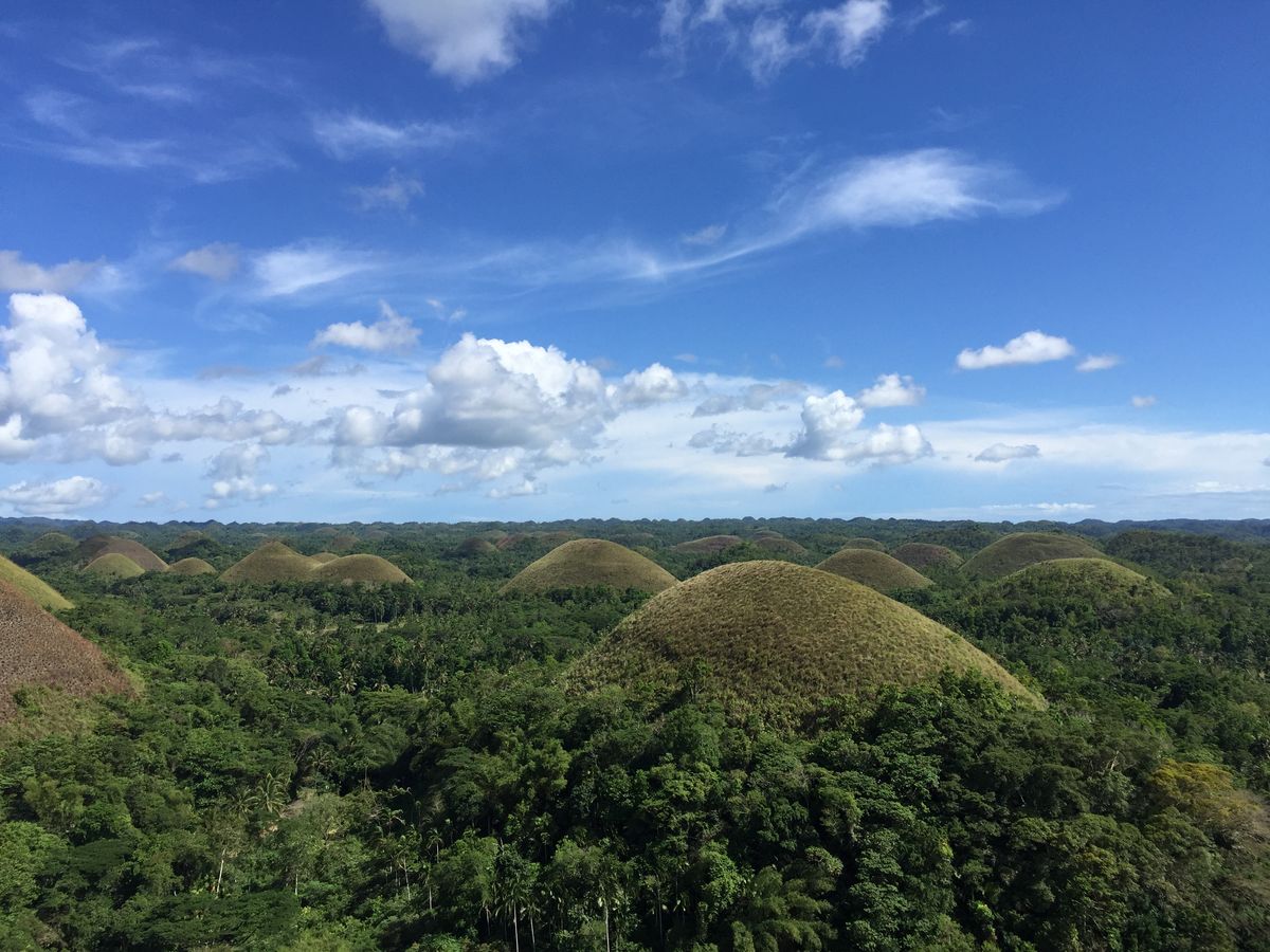 チョコレートヒルズの展望台へは、少しハードな階段を登ります。展望台につくと、気持ちの良い風が吹いていて、絶景。5月だったのでまだ丘は緑色でしたが、丸い丘が可愛く、楽しめました^ ^