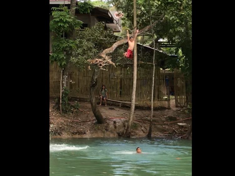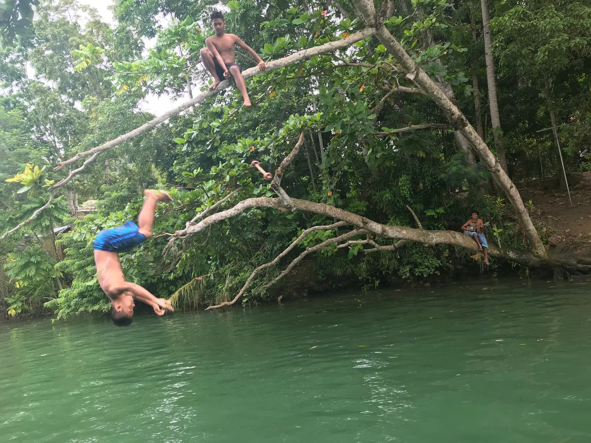 現地では、夏休み期間中ということで、子供たちが川遊びをしていて高い木に登り、飛び込んでいて、そのたびに歓声が上がっていました。