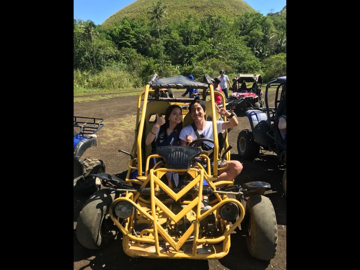 その後は、チョコレートヒルズでバギーに乗り、ガイドさんがバギーを運転しているところを動画で撮影してくれました。また、撮影ポイントでは、様々なポーズで沢山の記念撮影もしてくれました。
