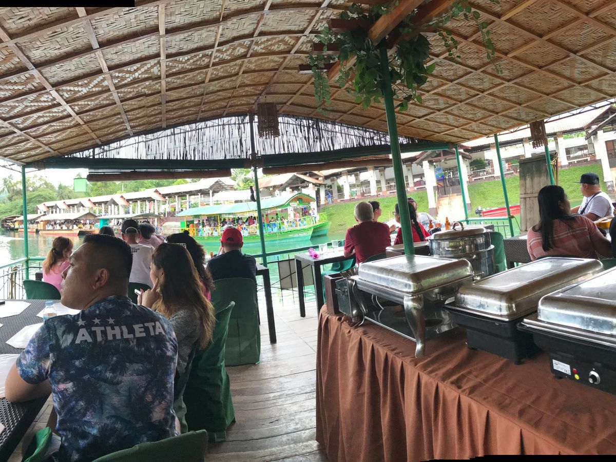 最初に訪れたロボッククルーズでは、歌と一緒に美味しいフィルピン料理を食べながらクルーズを楽しめました。クルーズのUターン地点では現地の人の踊りを見て、一緒に写真撮影も出来ました。
