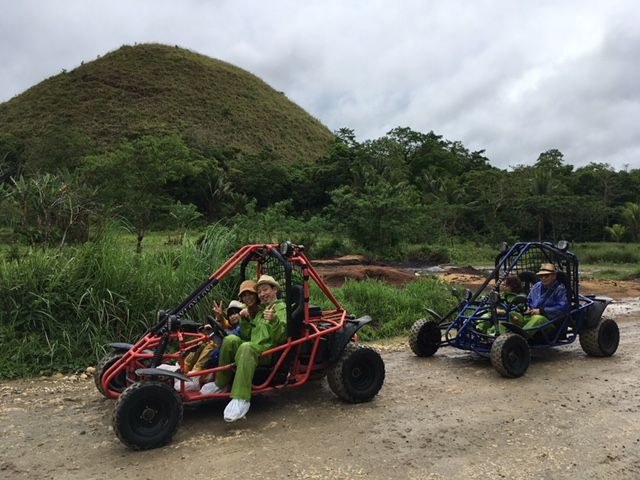 チョコレートヒルズでは、バギーにトライする者もいて、1人は道から外れて転倒するというアクシデントがありましたが、擦り傷程度で済み基本的には全員が満足したツアーでした。