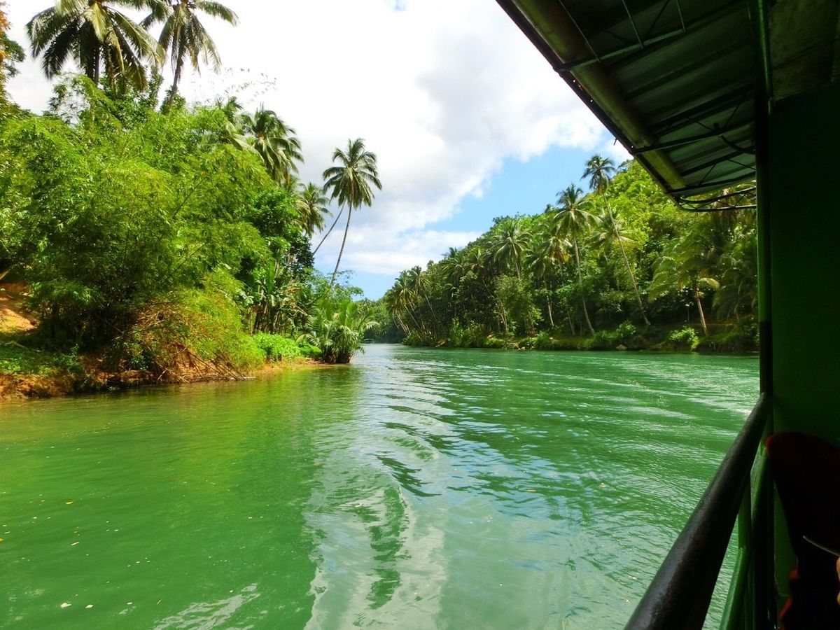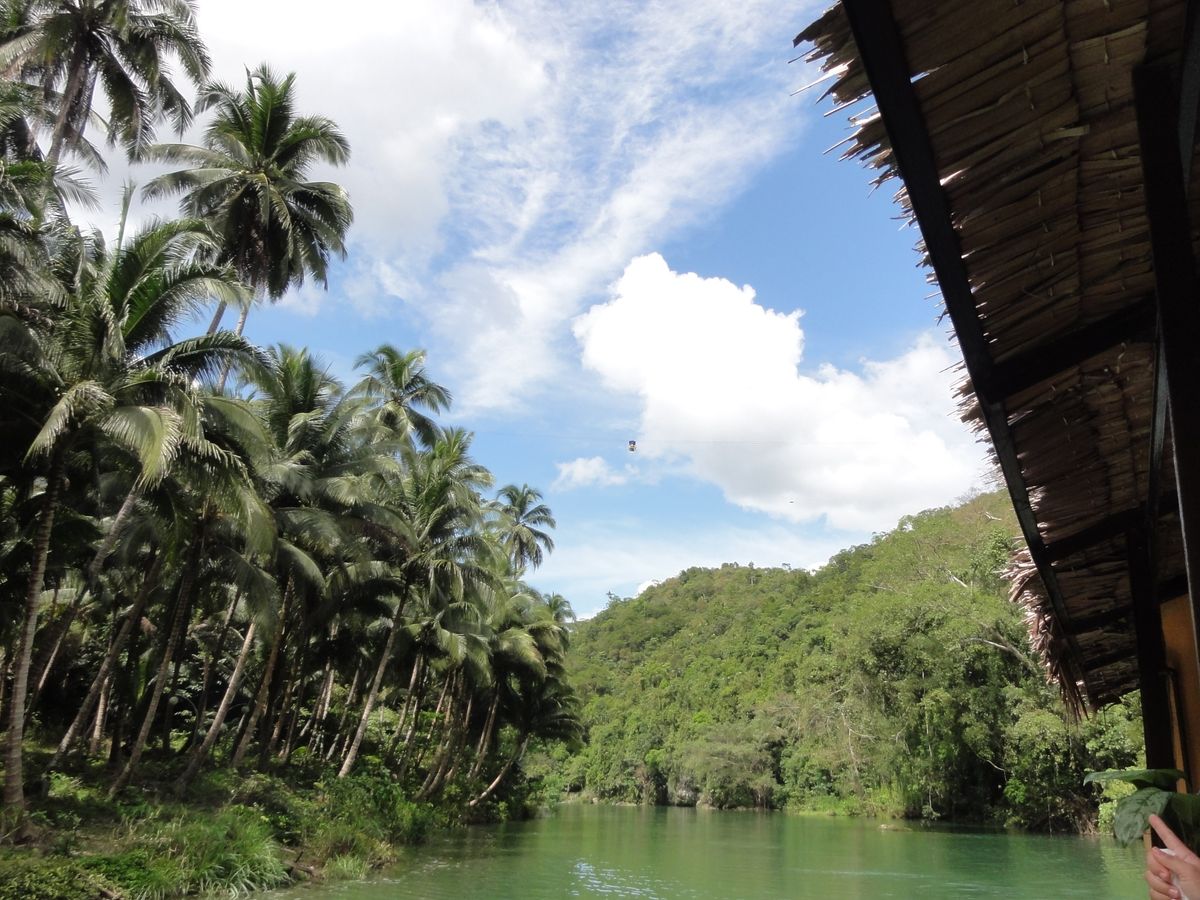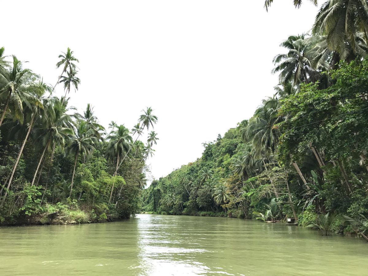両岸にヤシの木が茂るボホール島のジャングルの中を