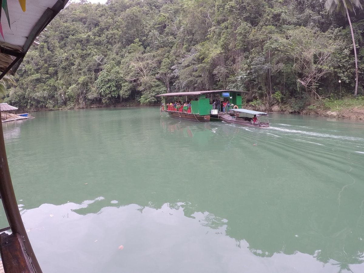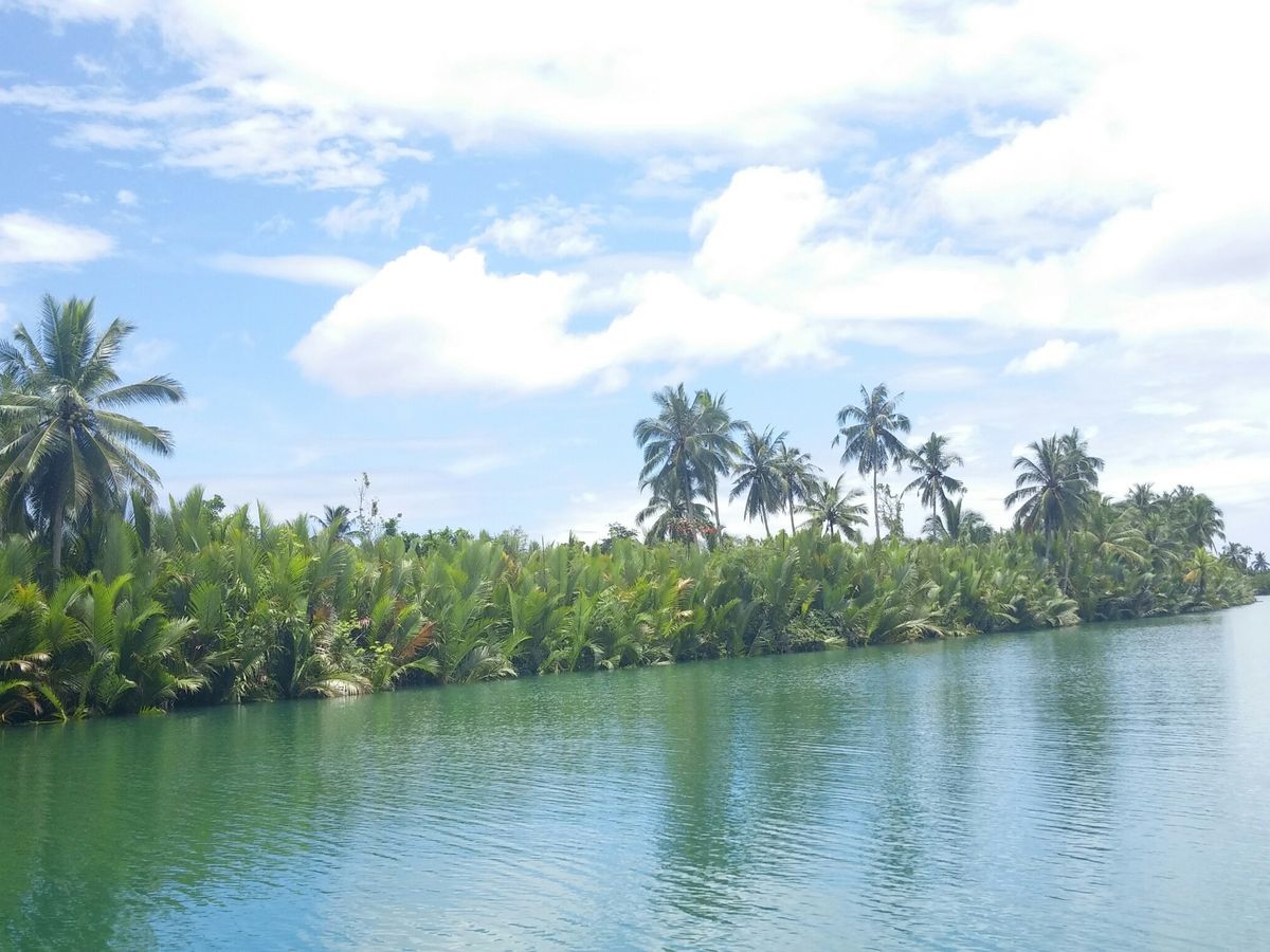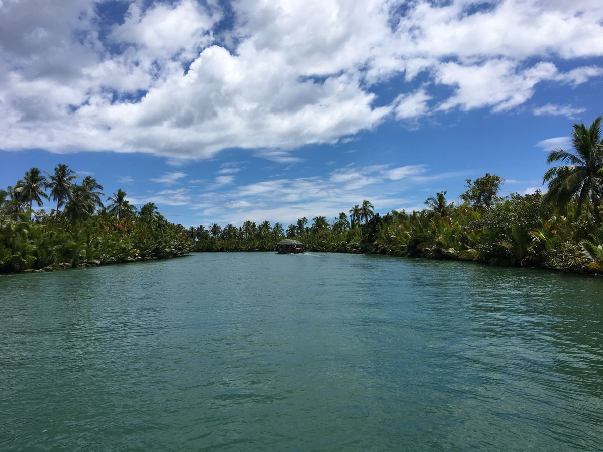 両岸にヤシの木が茂るボホール島のジャングルの中を
