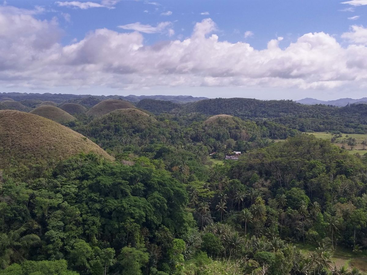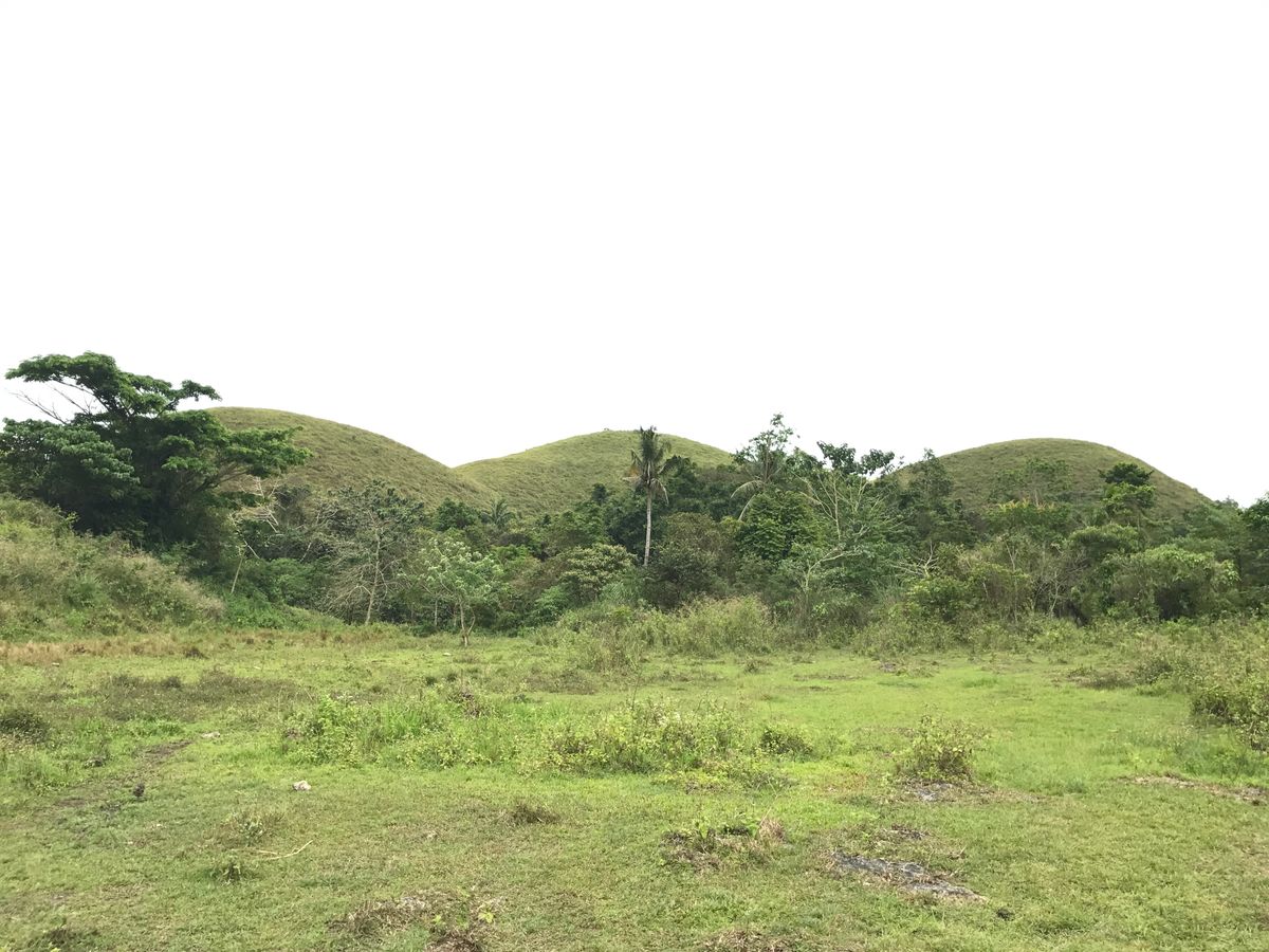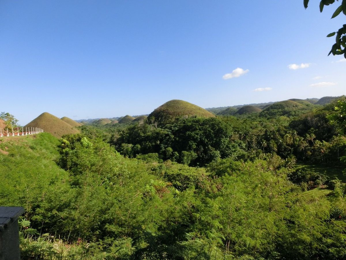 今の時期のチョコレートヒルは乾季のため、緑から徐々に茶色になっていくので