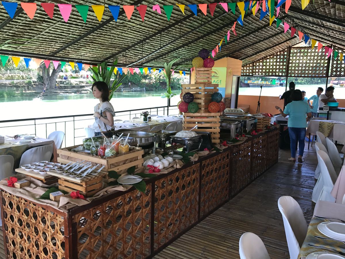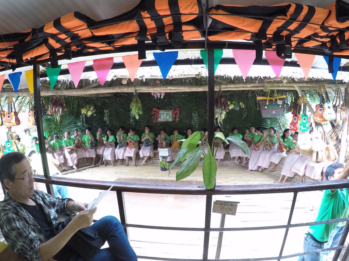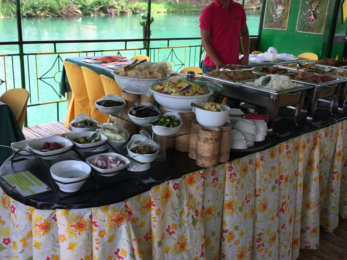 フィリピン料理のビュッフェをいただき、生演奏と歌を聞きながら、約1時間のランチクルーズでしたが、景色が綺麗で料理も美味しく、途中地元の方たちの歌やバンブーダンスを披露して頂き、ゆったりとした時間を過ごす事ができ、大満足でした。
