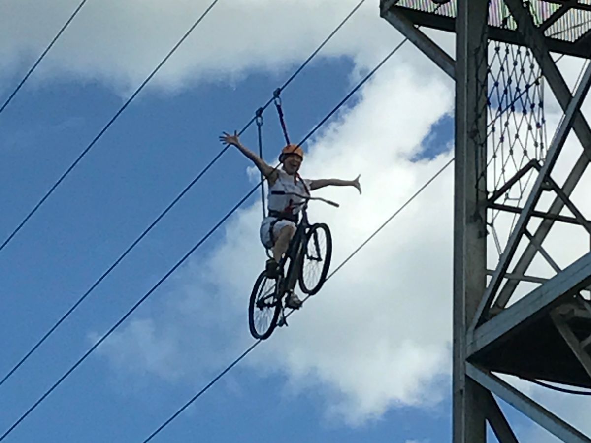 ジップバイクは私も経験があるのですが、中央付近は特にワイヤーが揺れやすいのでドキドキだったのではないでしょうか?