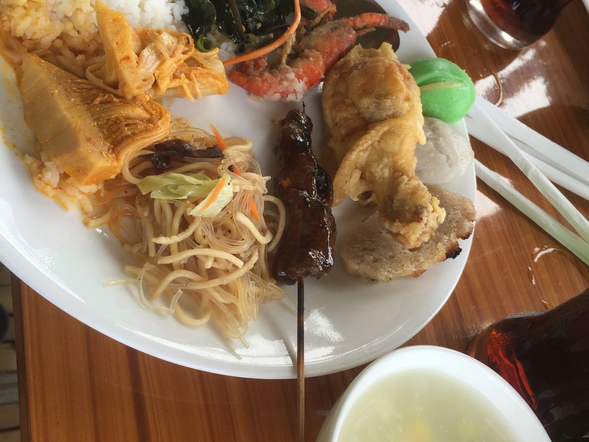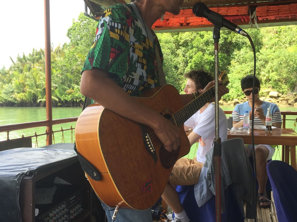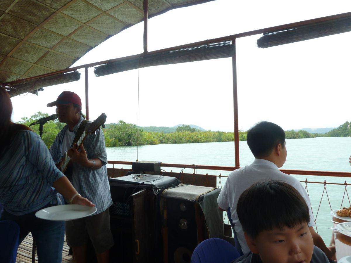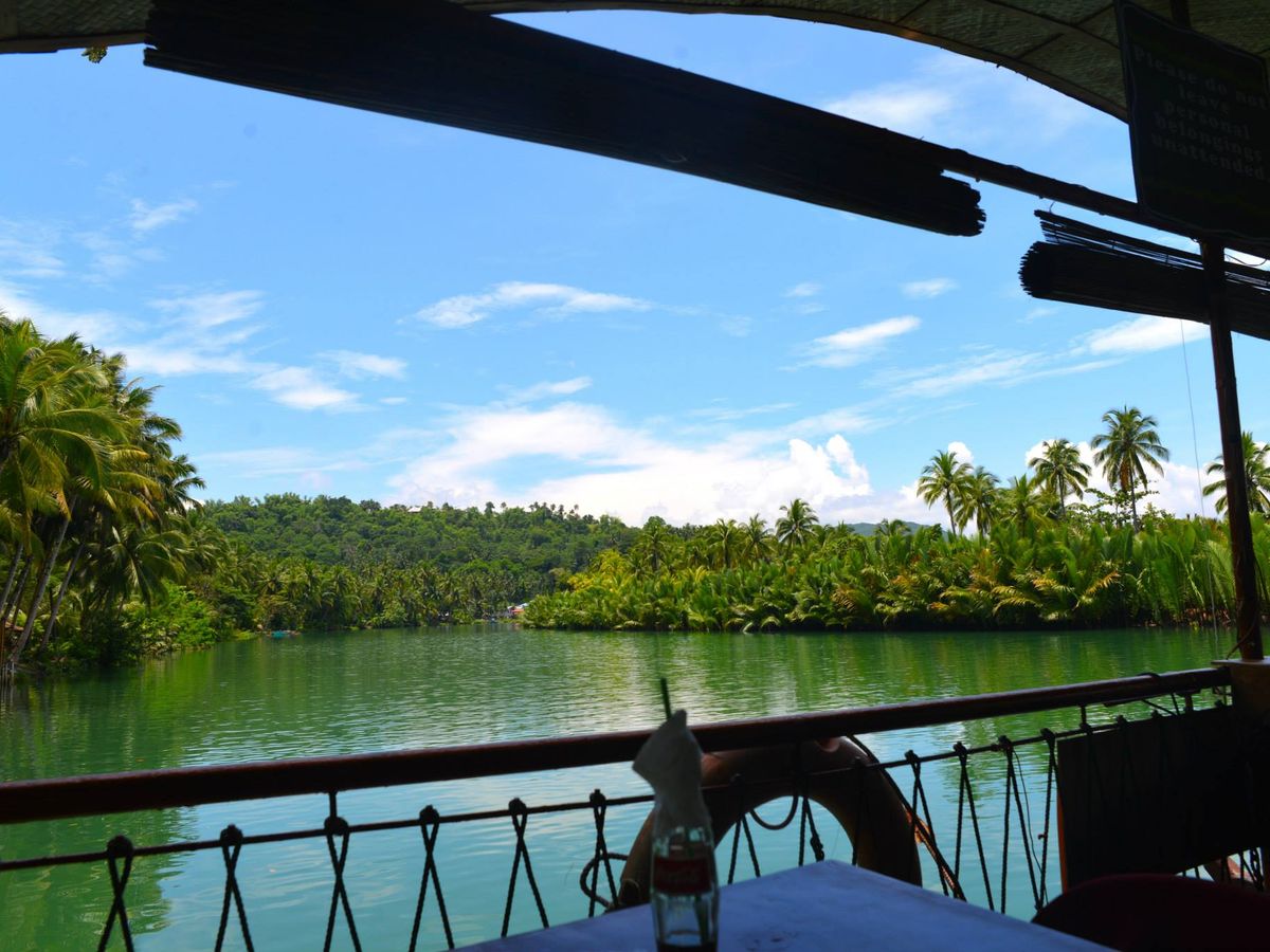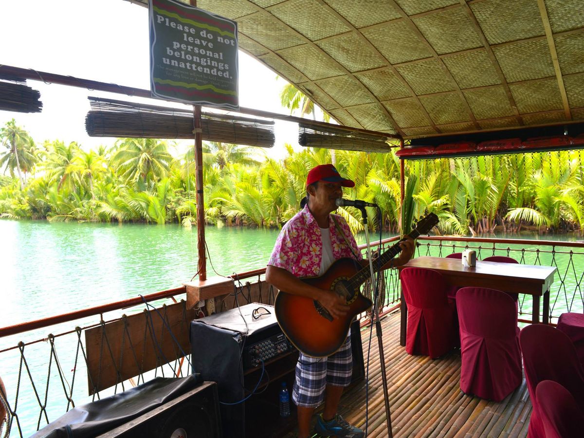 私個人としては2大ポイントのチョコレートヒルズや、メガネ猿ターシャーより、昼食が一番楽しく、美味しかったです。川下りをしながら昼食をいただくのですが、その中でギターの生演奏があり、なんと「乾杯」を歌ってくれました。周りにいる日本人とともに大合唱をし、一気に打ち解けることができました。料理もブッフェスタイルで、見たこともない食べ物もありましたが、どれも美味しくいただくことができました。