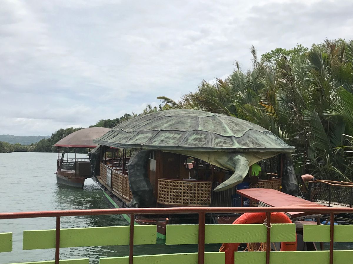 次は、ロボック川のリバークルーズです。流れのない川をクルーズしながらのフィリピン料理のランチです。もちろん食べ放題です。船なので水と氷が心配でしたが、衛生管理も問題なくお腹も壊しませんでした。途中では地元の住民たちが現地の踊りを披露してくれます。連れはステージに上げられて楽しく踊っていました。気持良くチップをはずみます。