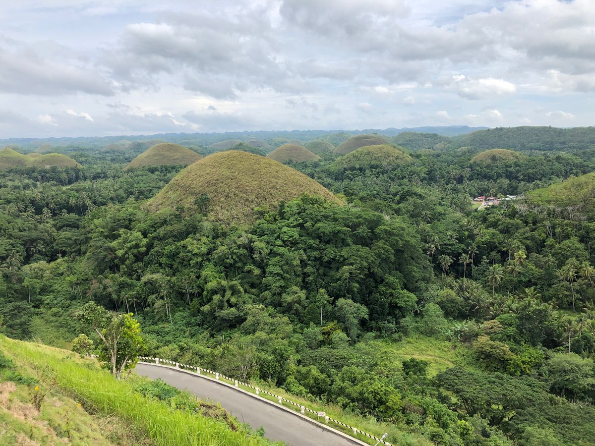チョコレートヒルズは温暖化の影響で綺麗な茶色ではなく少し緑がかってました。