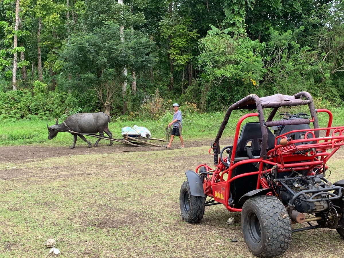 ツアーの運転手プロ、フィリピン人女性ガイド日本語バッチリで面白く解説、ターシャは小さくてかわいい、川下りビュッフェ美味しかった!バギーは最悪にして最高に楽しかった!泥んこ状態になるので諦めが肝心!開き直って楽しまないと損!しかも、あんまりバギーの整備は行き届いていない感じ、これがフィリピン流なのか2人乗りバギーのサイドブレーキ効かず、シフトレバーはニュートラルでもバックでも前進するし、フットブレーキもあんまり効かない!最悪はアクセルが全開になったままもどらなくなった地獄状態!前を走っていたフィリピン人インストラクターのバギーに追突事故!この状況をインストラクターが録画していたので後で見返して大笑い、結果的に最悪が最高のアクティビティになりました!