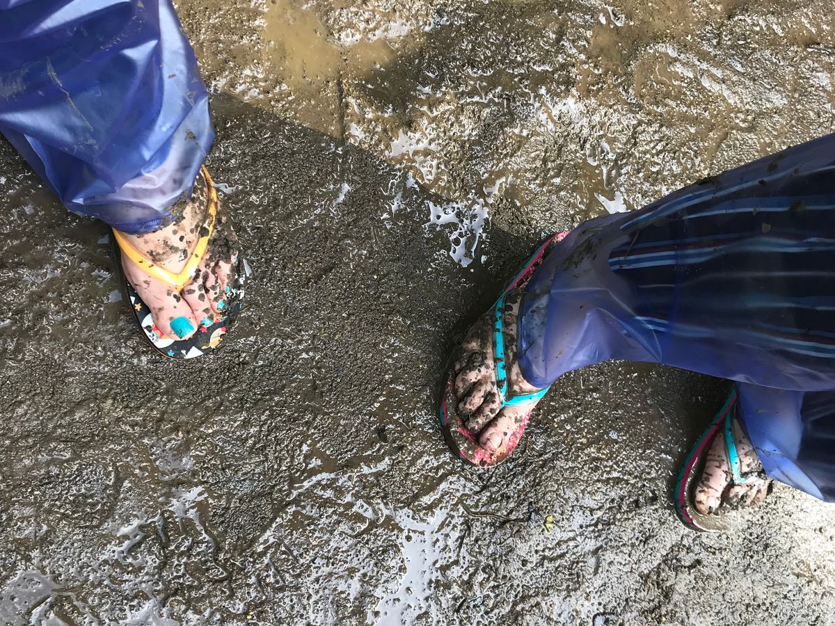 泥だらけになりますが、レインコートとビーチサンダルを貸してくれるので、私は膝下と手首の辺りに泥が付くくらいでした。