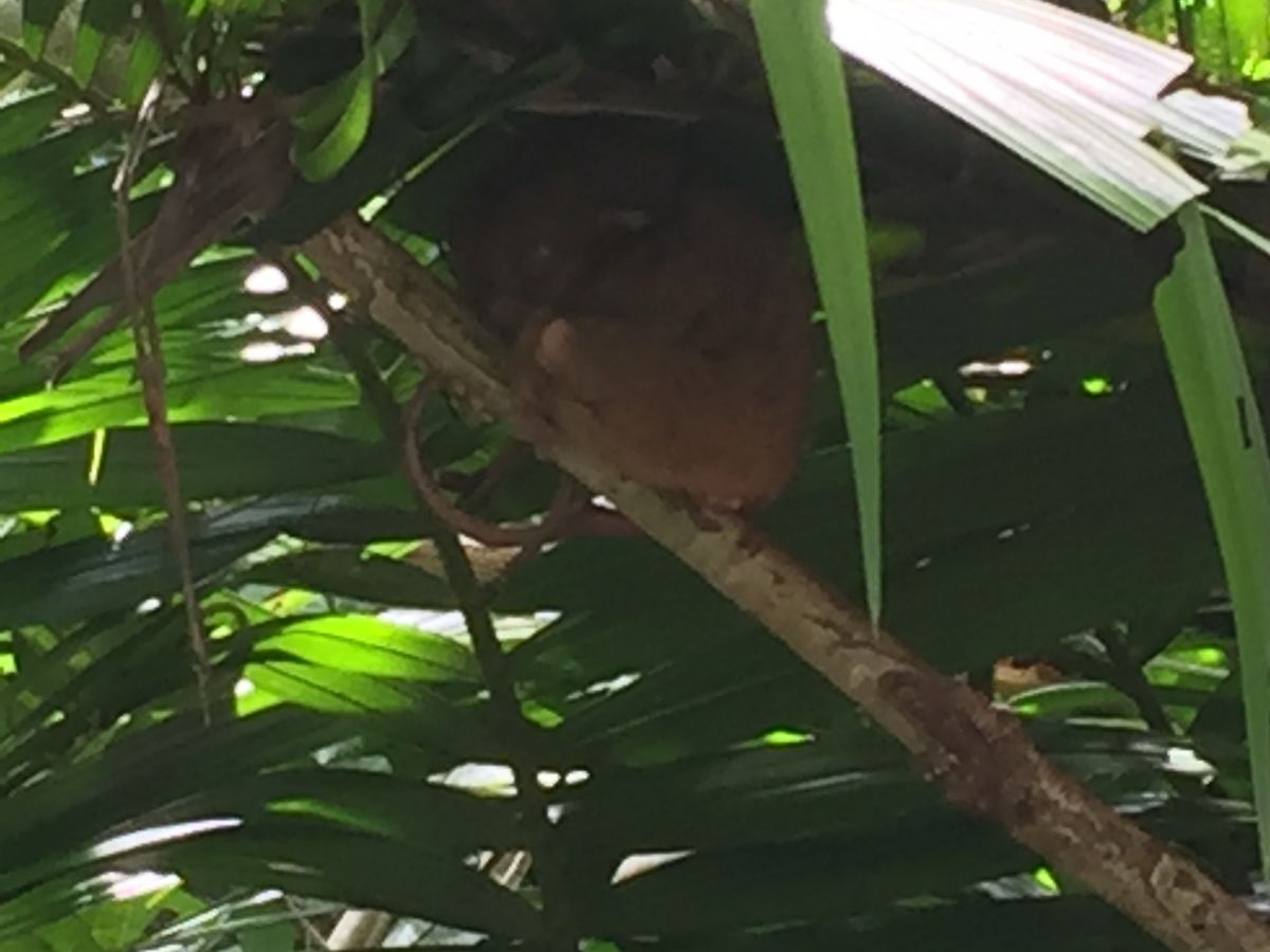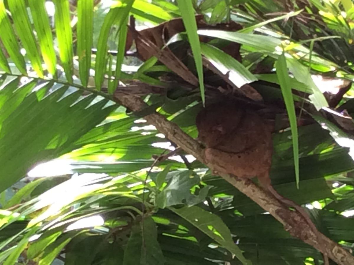 ターシャ、予想以上にかわいい‼️目を開けて、顔をくるーりと回して、また寝ました。ターシャのお土産を買いそびれて、残念!ターシャT - シャツ買えばよかった。ボホールにしか売ってないようです。