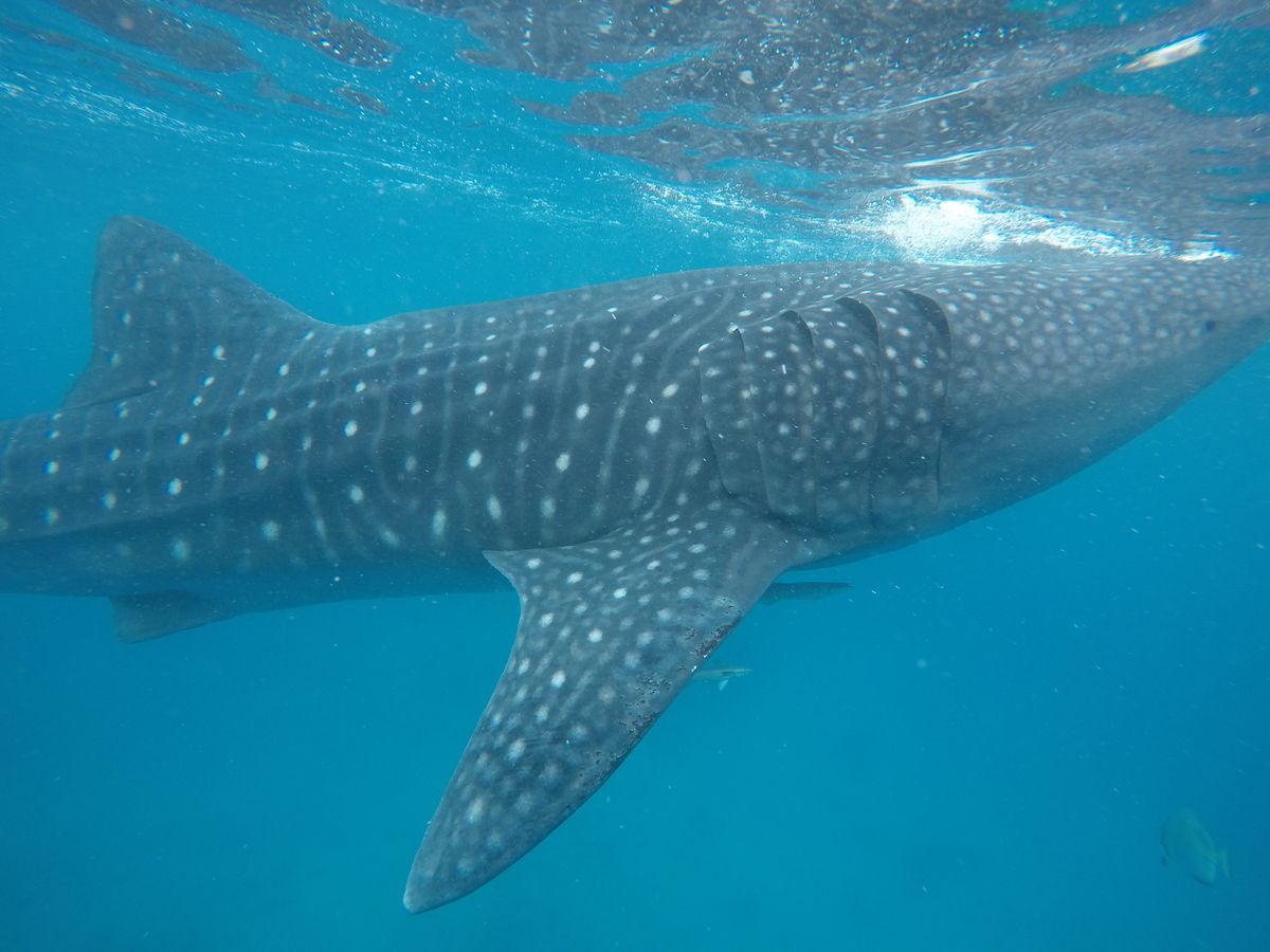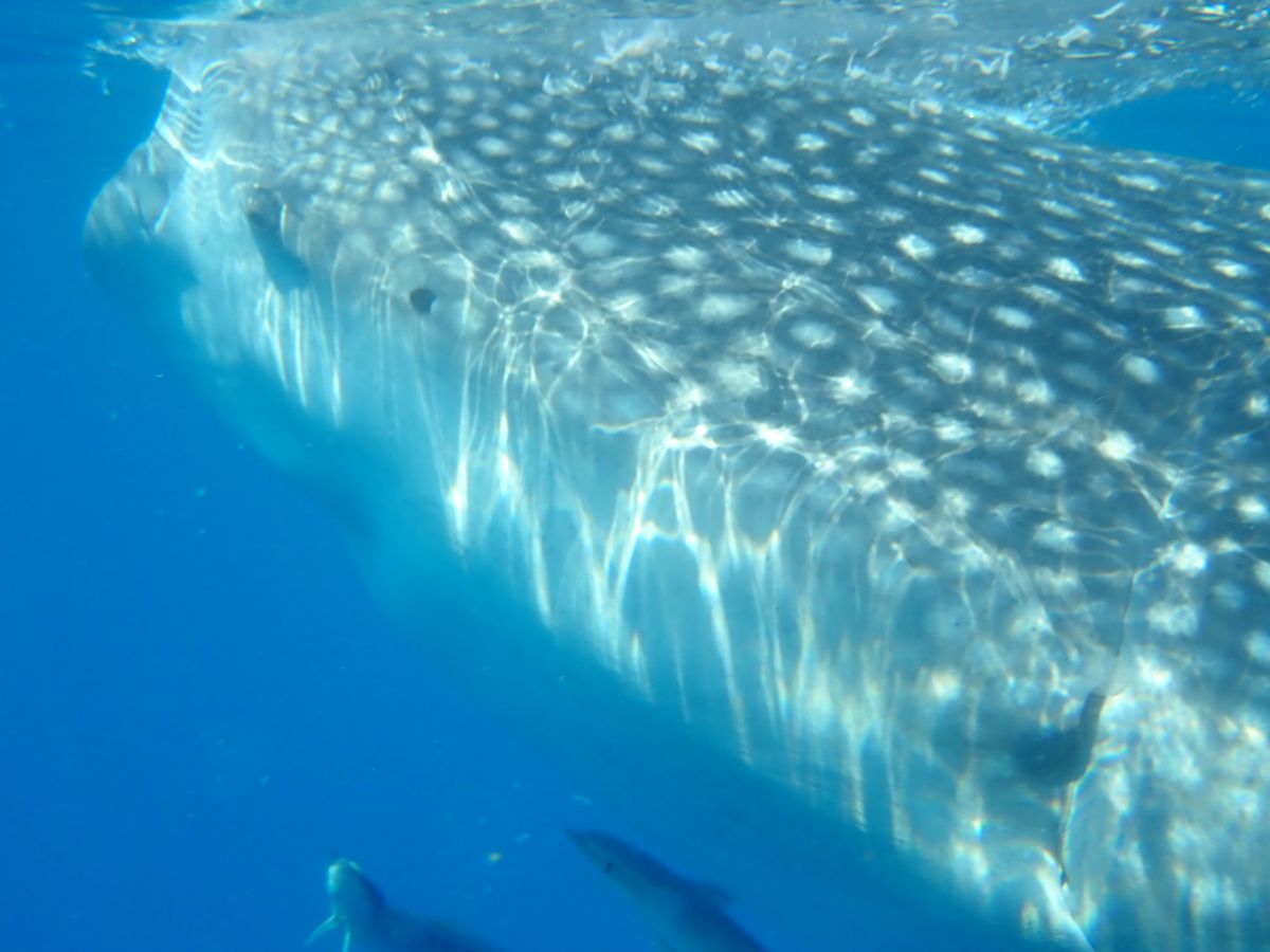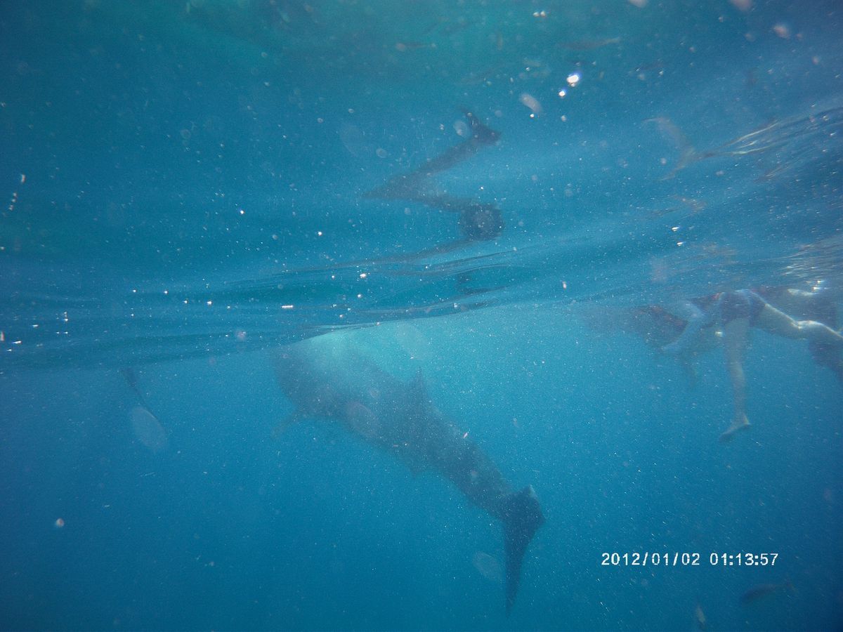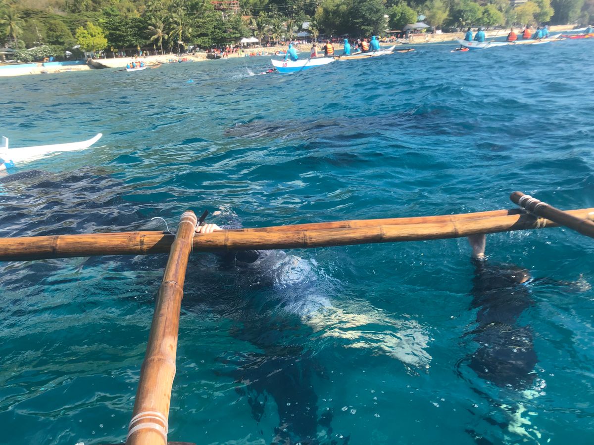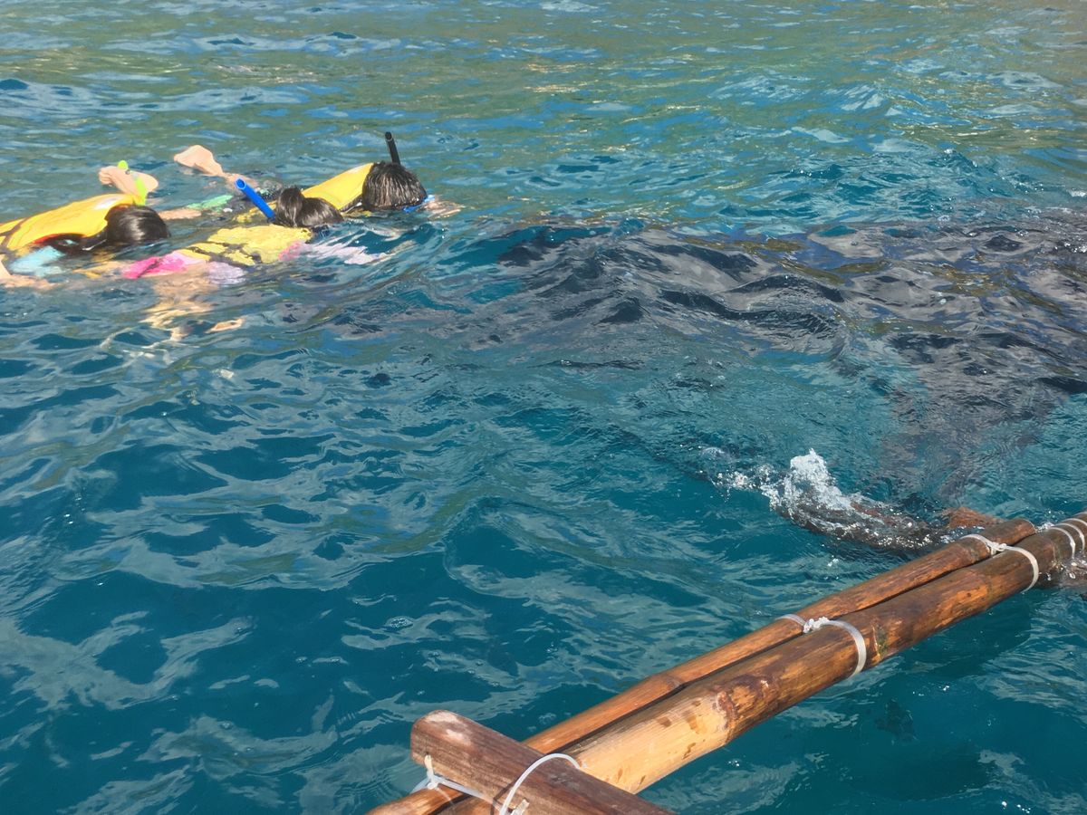 ジンベイザメ。私たちは船頭さんにカメラを渡して撮ってもらいましたが、まさかのメモリー切れ。全然良い写真がありませんでした。