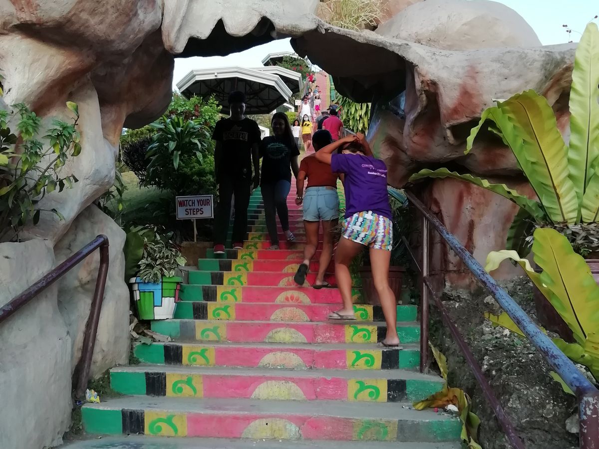 みんなでチョコレートヒルズの展望台に登ります。希望者はジップバイクで往復します。展望台まで階段が結構あるので歩きやすい履物をおすすめします。ジップバイクは空中散歩をゆったり楽しめるのでおすすめです!