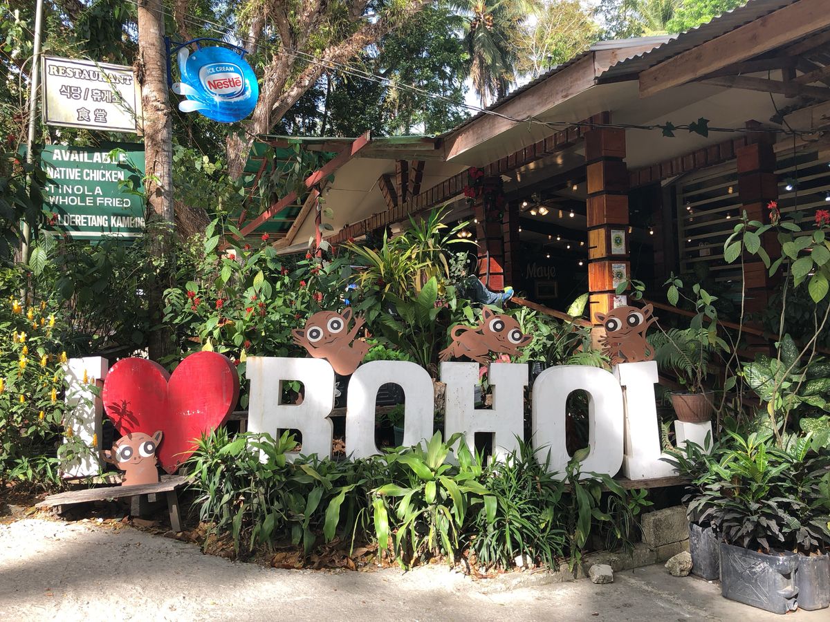 オスロブについて、いざジンベイザメに会いに行きますが、繁忙期のため(中国の春節時期と重なりました)しばし待機。20分程度待った後、小さな船で出発!といってもそんなに長距離はのりません。ほんの数分なので乗り物酔いしやすい方でも薬いらずです。100パーセント、しかも何匹も見られます。お腹いっぱいジンベイザメを見た後は、リアルにお腹が減ってきます。着替えてすぐにブランチです。このタイミングでの食事はよく考えられてると思います。お昼は外人さんしかいない、イタリアンレストラン。観光用なので味は期待していませんでしたが、そこそこ美味しいです。ただ、自費で一杯ドリンクを頼む必要があります。ビールで70ペソ。(2019年2月現在)お安いです。ここでは40ー45分間くらいしかないので悠長にすごしてるとうっかりガイドさんにあと五分、といわれ焦る羽目に。お気をつけください。次はオスロブを軽く、本当に軽く観光して、船に乗ってボホール島へ。行く予定が一転、突然、船が定刻に出ない事態に。11時30分出発予定でしたが、1時半までに出なければボホール島は中止といわれツアー参加者全員、顔面蒼白に。まぁ、この繁忙期による事情っぽいので通常期は大丈夫かと。