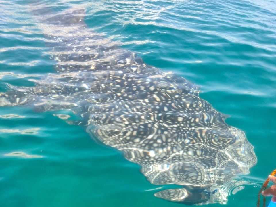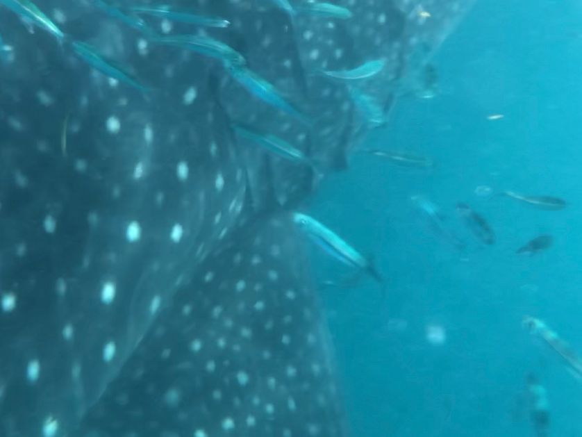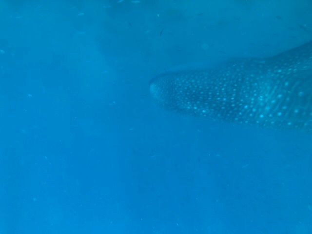 手漕ぎボートで数分でポイントに到着。びっくりするほど近くにジンベイが…大きな口に吸い込まれるかと思うほどの迫力!大満足でした!