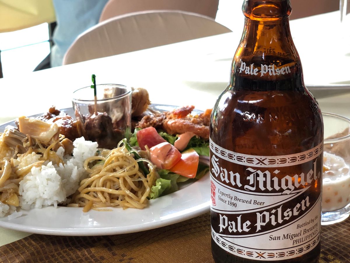 約1時間のクルーズですが、ブッフェスタイルのフィリピン料理は美味しく、お腹いっぱいになりました。ビールは65pぐらいだったかと思います。