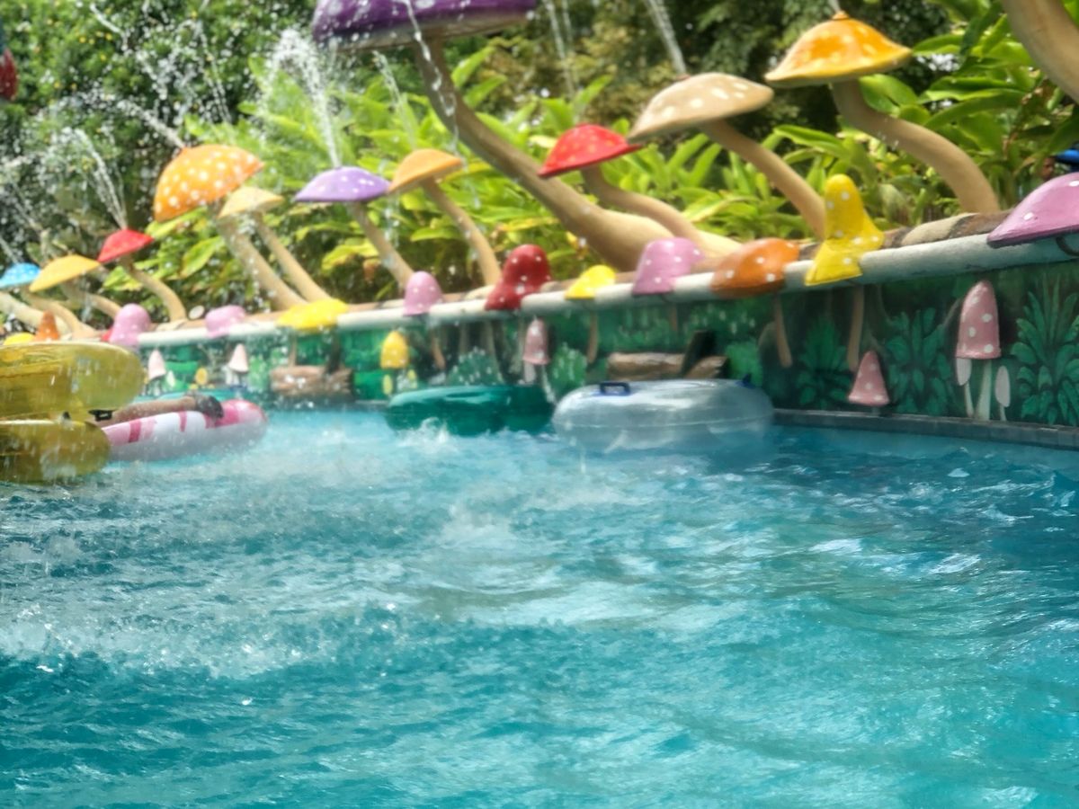 流れるプールには透明の浮き輪が浮いていて自由に使えます。