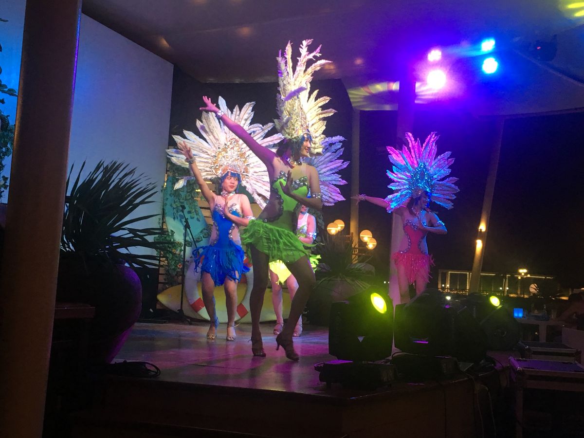 参加型のイベントもやっていて、メインプールでマイクを持った元気なお兄さん(おそらく併設ジムのインストラクターかと)が子供達相手にパズル競争をやっていました。その流れからエアロビのステージへ。