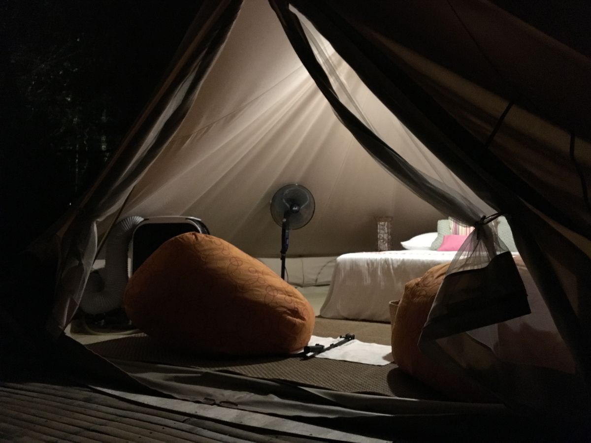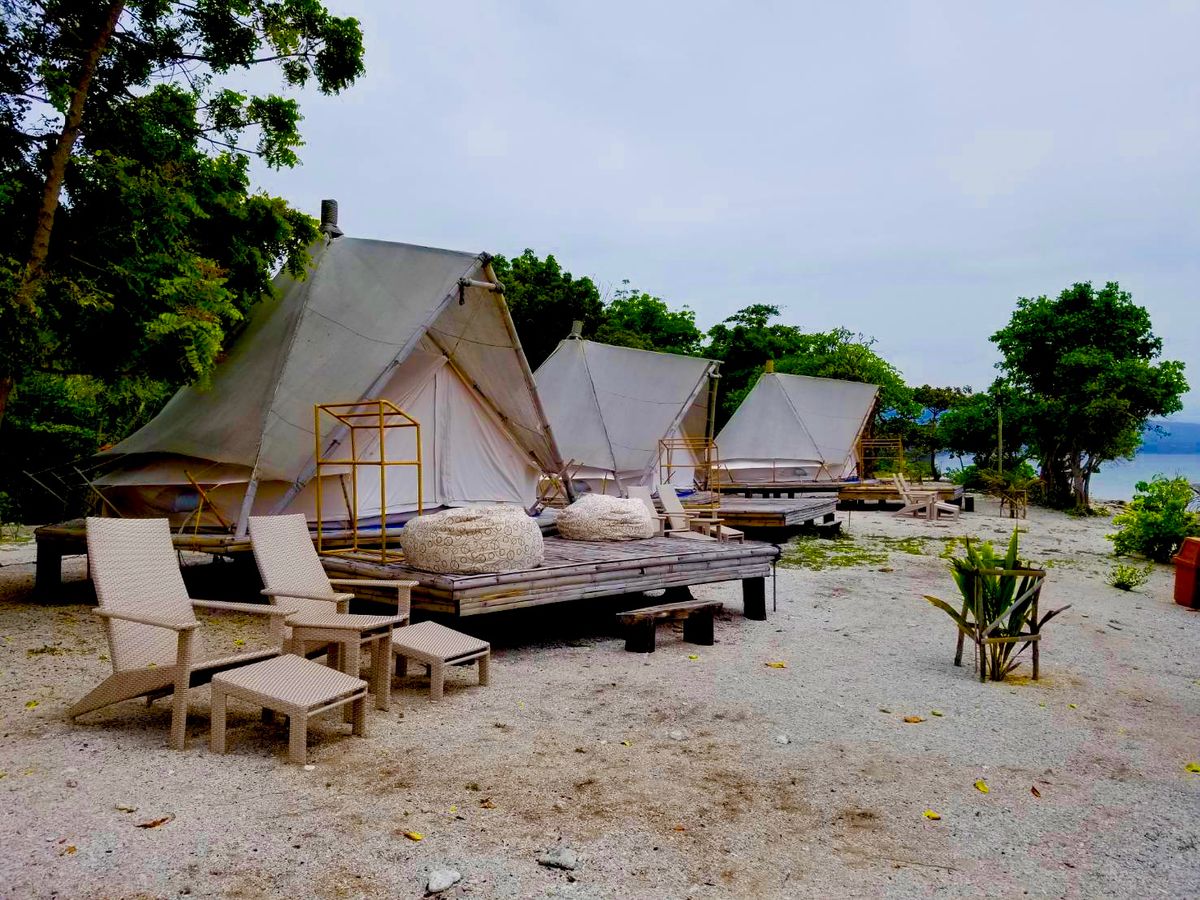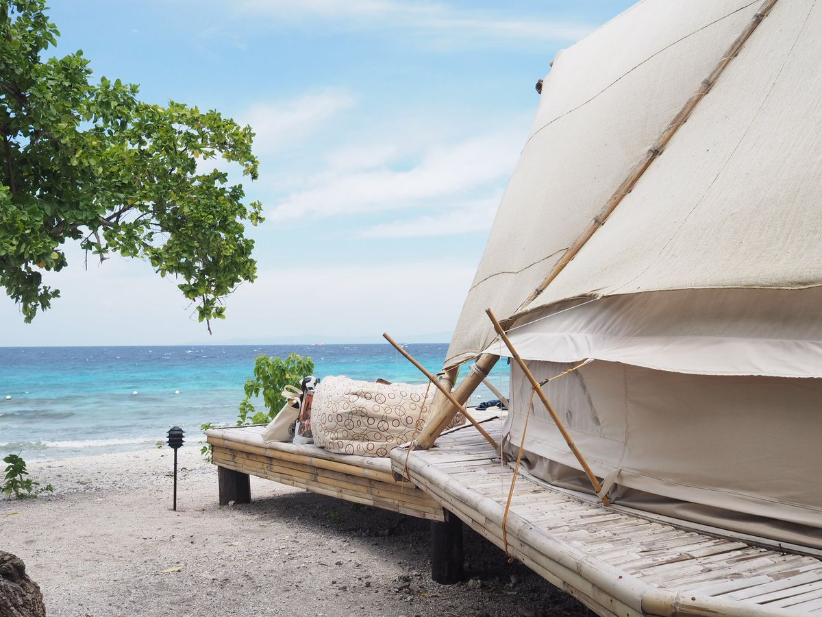 島全体がリゾートのスミロン島、グランピングは目の前が海です。夜は波の音をBGMに就寝できます。