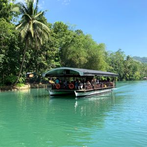 チョコレートヒルズを一目見たくて参加しました。朝早く起きるのが大変でしたが、送迎があったのでゆっくり寝ていられました。朝食はホテルでお弁当作って頂き、持参しましたが、セブ港にもカフェらしきものがありました。ボホール島ではまずターシャに会いに。思っていたよりとても近くで見ることができ、小さくて可愛かったです。ロボック川でのクルーズビュッフェランチは景色も良く、スタッフさんが歌ったり踊ったりしてくださって楽しかったです。私たちも一緒に参加し、盛り上がりました。チョコレートヒルズではバギー体験をしました。操作は簡単で普段運転しない人でも楽しめました。スタッフさんがいっぱい写真を撮ってくださり、良い記念になりました。ただ、砂埃がすごく、雨が降った後は水溜りもあるため、服装に注意が必要です。ガイドさんは日本語とても上手で、フレンドリーでとても楽しく1日過ごせました。