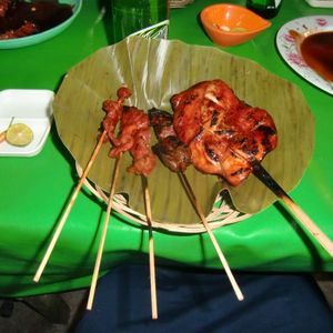 ガイドブックにも載っているローカル色の強いこの店で食べられたのはうれしかったのですが、急な予定変更のせいか、大き目なお肉1本と超小ぶりな串5本とちまきだけで、量が少買った点が残念でした。
