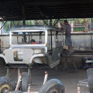 ジープニーの工場に観光しましたら、荒れ果てた町工場のようで、