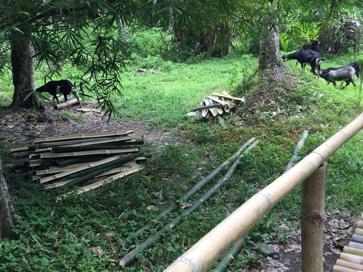 竹で作られた長い通路など、自然の素材を利用したものは、都度修復を行っております。