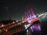 帆船の雰囲気はとても良いですね。8時に花火が近郊の陸地から上がります。短時間ですがとても良い演出です。