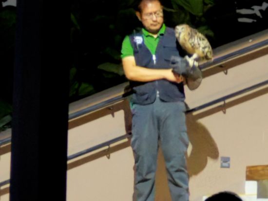 まずはホテルまでシャトルバスで迎えに来て下さいます。到着後は、ご飯を食べられる場所やお土産屋さんの場所を教えていただき、フリータイムです。その後、トラムでナイトサファリ内を回るのですが、一般レーンとは別の専用レーンで待つことなくトラムに乗ることができました。トラムで動物たちを見た後は、アニマルショーです。