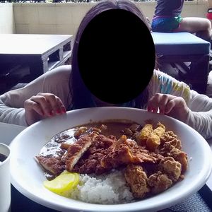 プールで食べたご飯はコスパまあまあ良かったです。メガ盛りみたいなカレー24ドル。