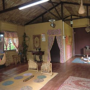 それからバティックの塗り絵体験。意外に難しくて最後はヤケでしたが、帰りに紙枠に入れてお土産に頂き、なんとなくサマになっていました(笑)