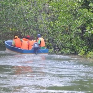 マングローブツアーは、6.8kmのボートツアーで1時間ちょっとですが、セブン川の北端と南端の狭い奥地まで入っていきます。運が良ければカワセミの綺麗な姿や、木で昼寝をしているスネークやトカゲなど野生動物も間近に見られちょっとした探検気分が味わえます。帽子があった方がいいです。