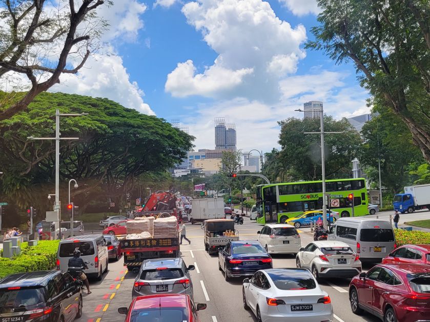 観光初日に2階建てバスの2階の一番前でガイドつきツアー(しかも私たち独占)を体験でき、そのうえマリーナ・ベイ・サンズの上空を飛ぶ軍用機なんていうラッキーショットを動画に収めることもできました。