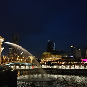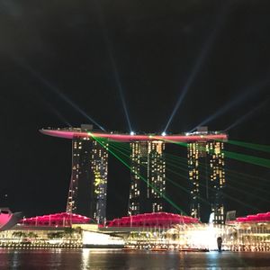 マリーナベイサンズの夜景ショーはマーラインオン公園側から見たのですが噴水ショーが小さくてよくわかりませんでした。全景の光のショーは良く見えました。音楽が小さかったの臨場感がなかったのが残念です。