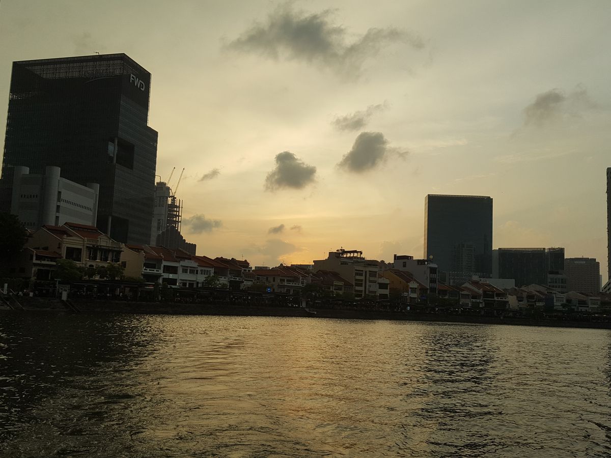 まず、リバークルーズ。まだちょっと明るかったけれど、マーライオンのあたりでは陽が沈みかけていい雰囲気でした。