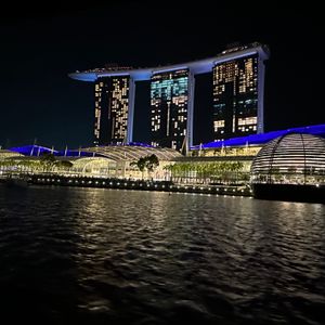 日没から始まるナイトクルーズ。シンガポールリバーを船で周遊します。涼しい風に吹かれながら、サンズやマーライオンなどのライトアップを水上から眺め、歴史的建物にも触れることが出来ます。ガイドさんの説明も興味深く、とても楽しめました。